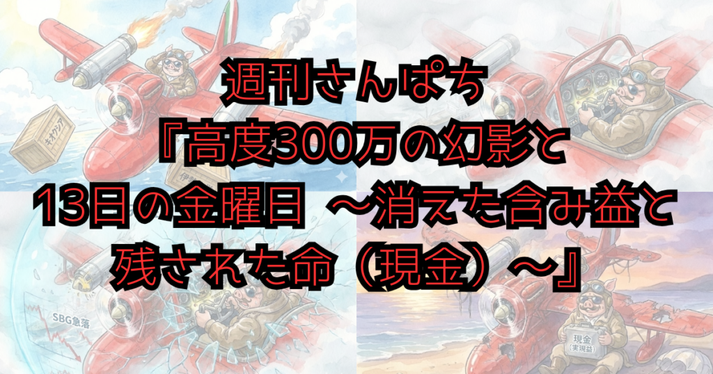【4コマ漫画】週刊さんぱち『高度300万の幻影と13日の金曜日 ~消えた含み益と残された命(現金)~』(2/2~2/6)
