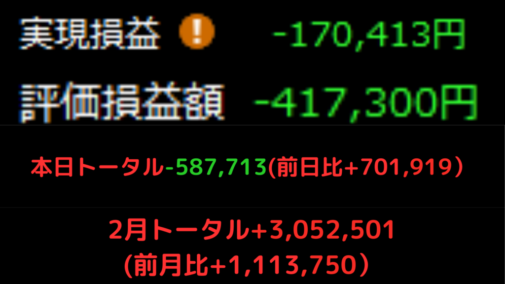 2/16 デイトレ353日目 ~期待を裏切る寄り天。100万超の含み損と対峙する「忍耐」の一日~