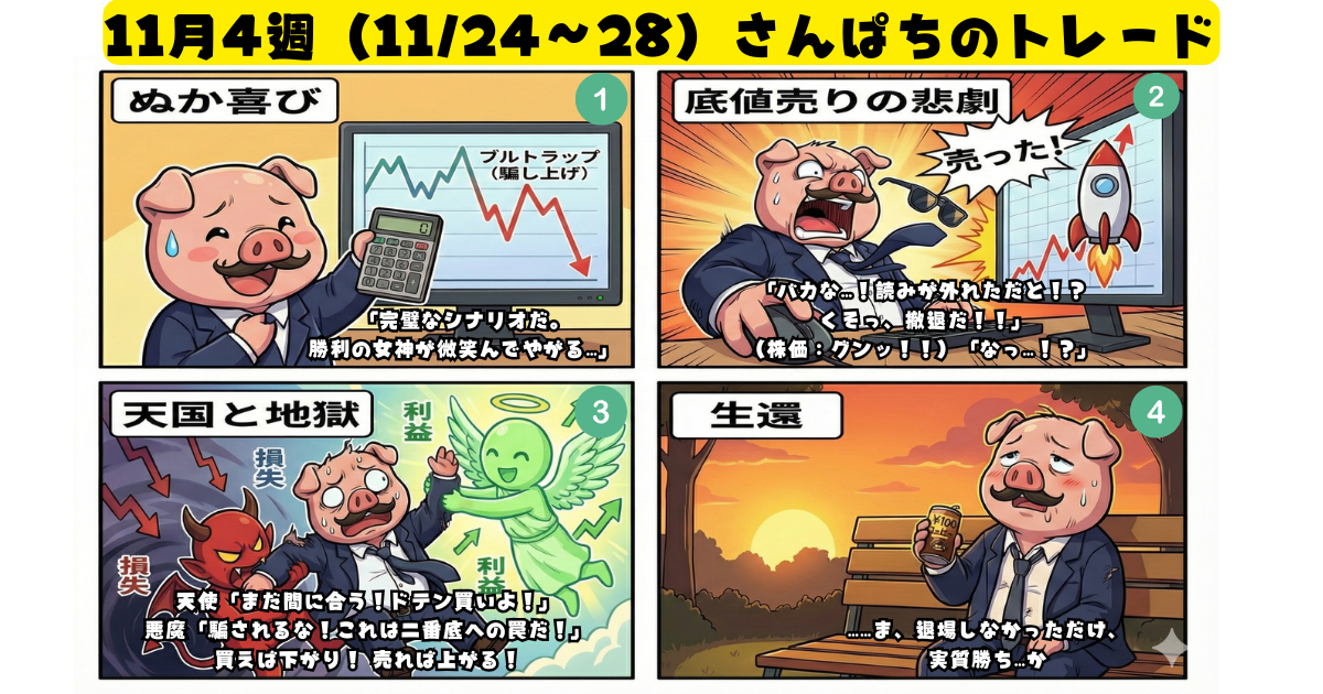 11月4週(11/25~28)さんぱちのトレード(4コマ漫画)