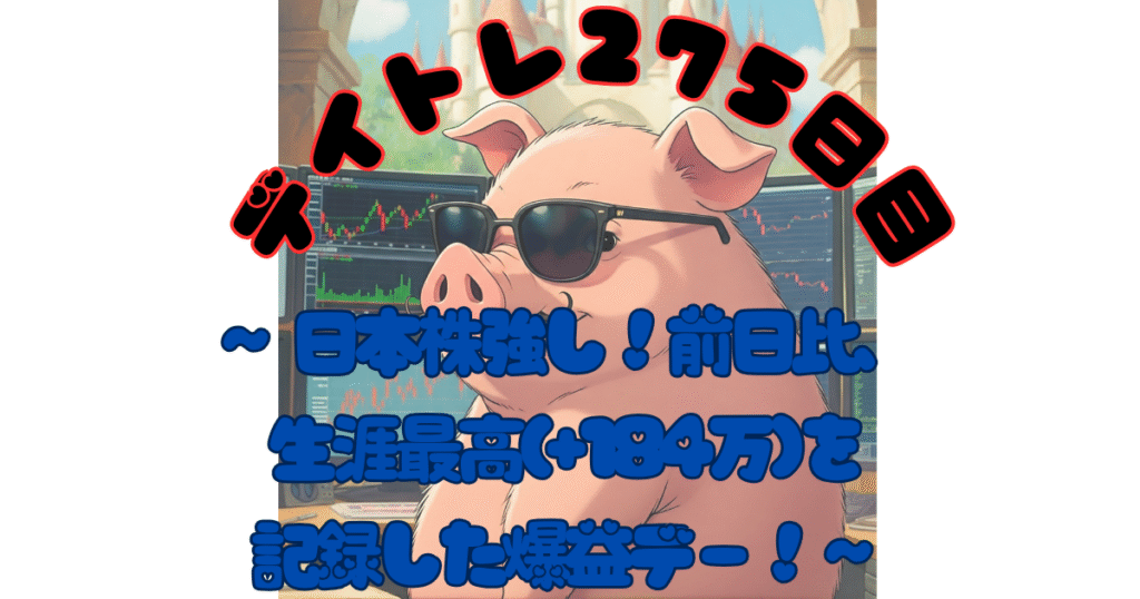 デイトレ275日目 - 日本株強し!前日比、生涯最高(+184万)を記録した爆益デー! みんな、こんばんは! 今日のトレードは、まさに**「生涯最高」**を記録する、忘れられない一日となりました。本当に、素晴らしい月曜日です! 週末の動きから、いよいよ高市...