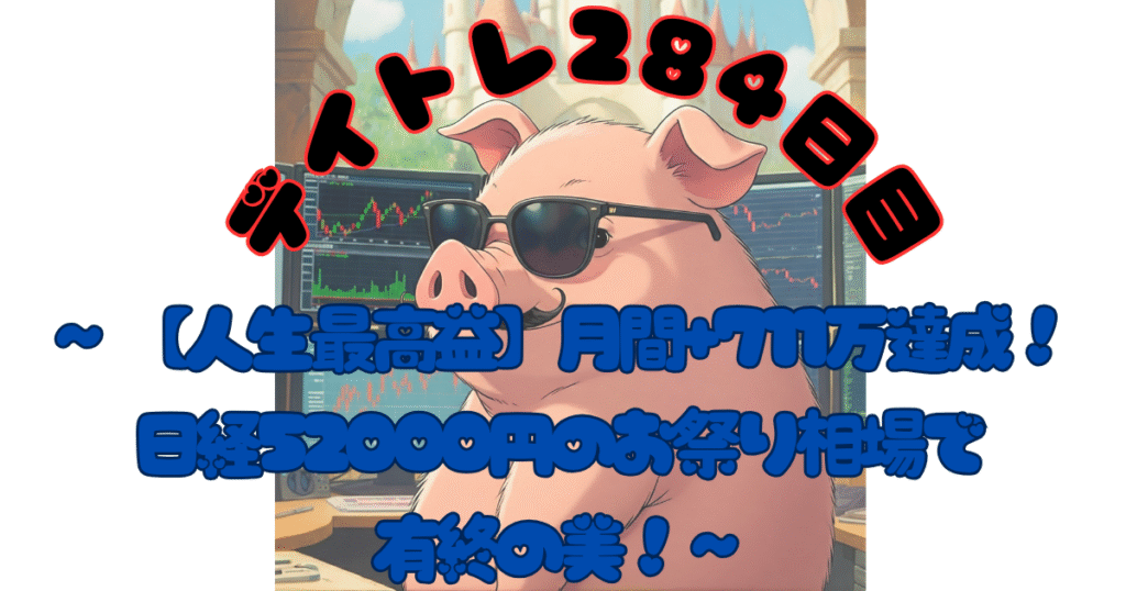 デイトレ284日目 - 【人生最高益】月間+711万達成!日経52000円のお祭り相場で有終の美! みんな、こんばんは。 今日も日本株は強く、高く始まった後も大きく上昇!あっという間に日経平均は史上初の52,000円に到達。その後一旦落ちるものの、再度高値を取... -
