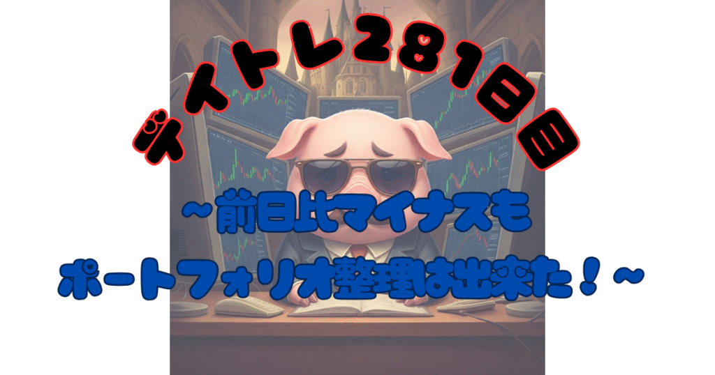 デイトレ281日目-前日比マイナスもポートフォリオ整理は出来た! みんな、こんばんは。 今日はさすがに日本株は昨日の上昇が大きかった分もあり、低く始まって始まり、昨日の終値を抜けることはありませんでした。 全体的に下がっている銘柄が多かったです... -
