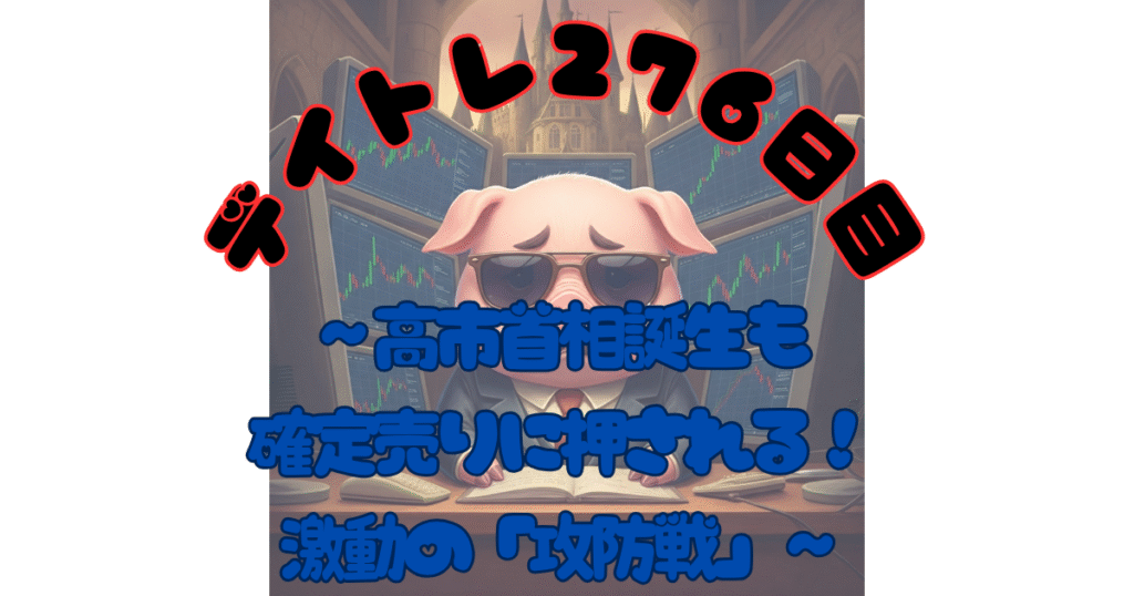 デイトレ276日目 - 高市首相誕生も確定売りに押される!激動の「攻防戦」 みんな、こんばんは! 今日のトレードは、期待と落胆が入り混じった、まさに激動の一日となりました。 「今日は大きく稼げる!」そう思っていた私の心を、市場は打ち砕いていきまし... -