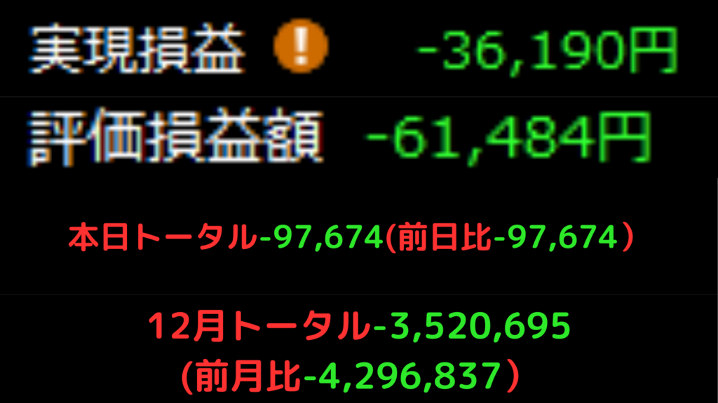 【12/17】デイトレ315日目 −9万…懲りない男のポジポジ病。詳細はNoteで