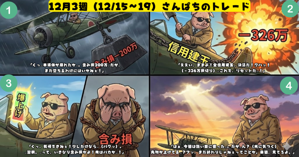 12月3週(12/15~19)さんぱちのトレード(4コマ漫画)
