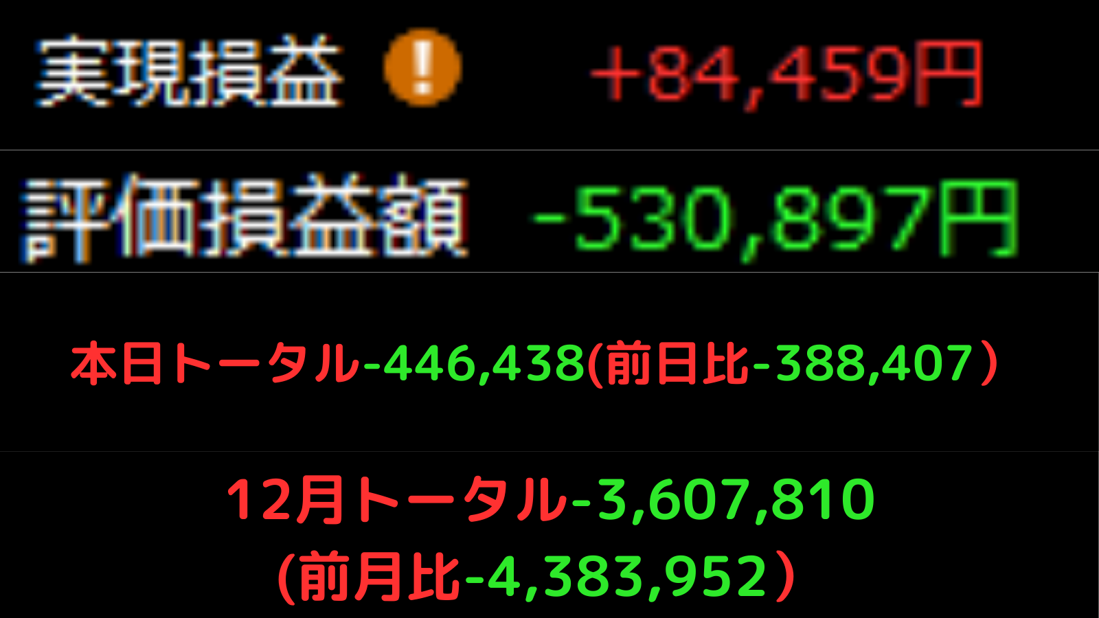 12/30 デイトレ324日目 本日トータル+8.4万…だが実態は−38万。大納会で「尻軽」に舞った代償。詳細はNoteで