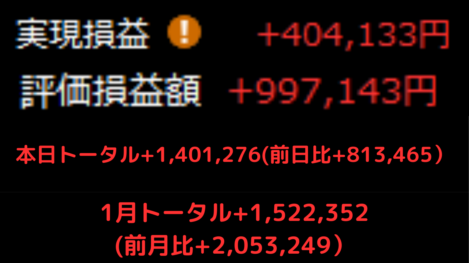 本日トータル(前日比):+1,401,276円(+813,465円)