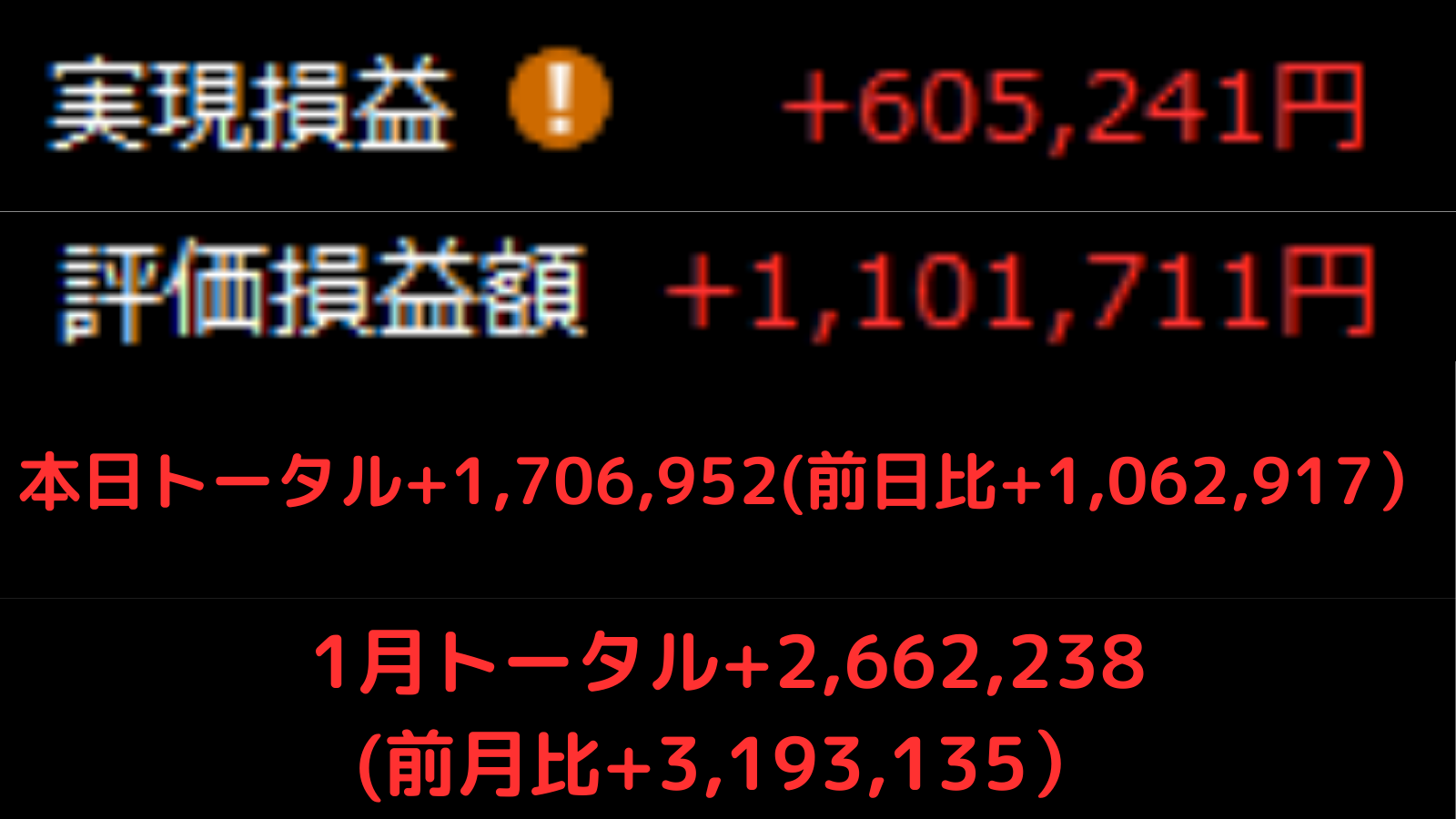 前日比+100万円オーバー。月間収支も+260万円に到達。