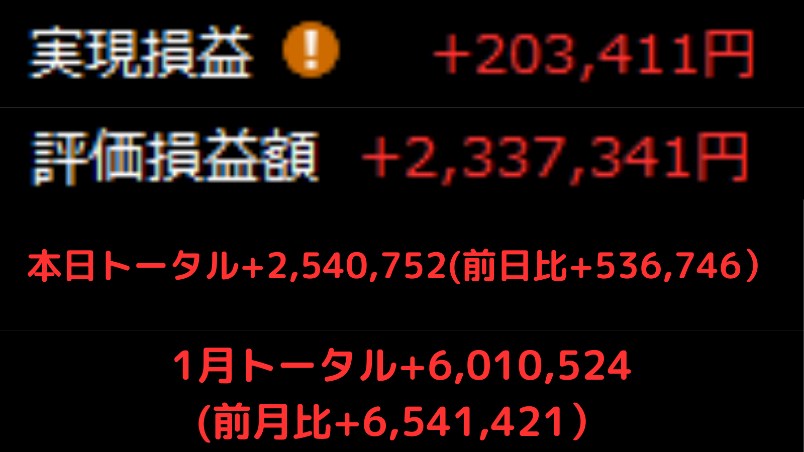• 1月トータル: +6,010,524円
