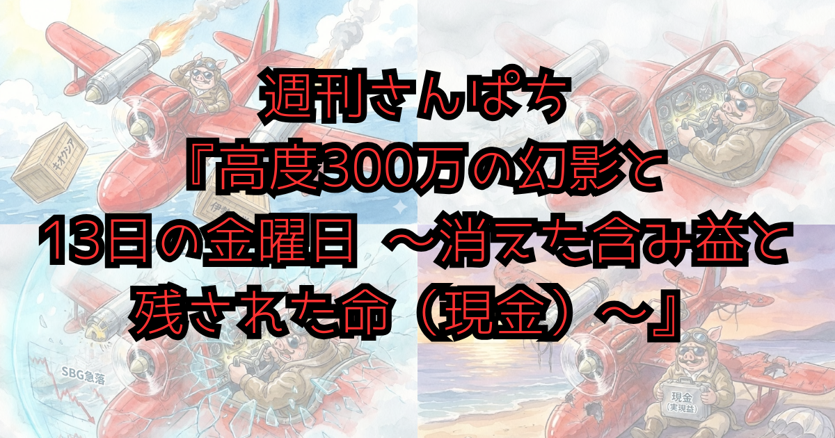 今週のフライトは、まさに**「天国から地獄」**への急転直下だったぜ。 週の前半、電線エンジンの爆発力で高度(含み益)は300万を超え、俺は「無敵のバリア」を手に入れた気でいた。 だが、13日の金曜日。相場の悪魔は、そのバリアをガラス細工のように粉々に砕きやがった。