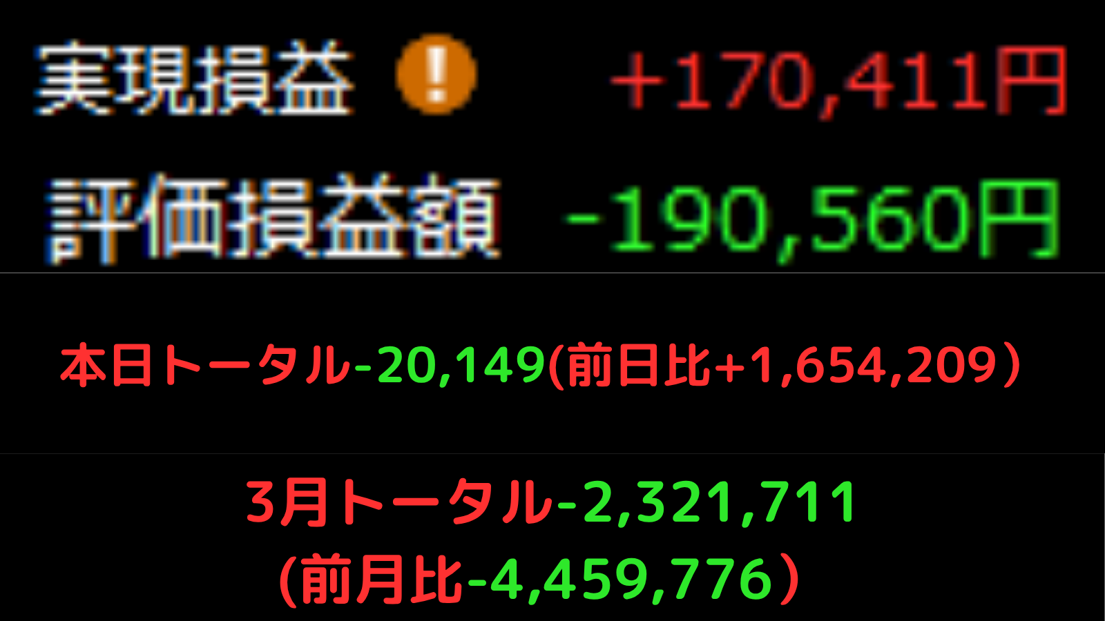3月25日 【デイトレ378日目】〜停戦の風に乗り前日比+165万!3月-232万まで回収〜
