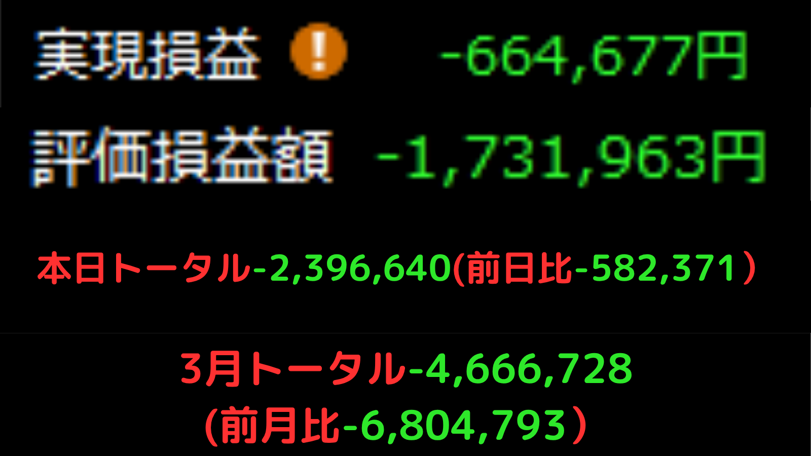 | 3月トータル | -4,666,728円 |