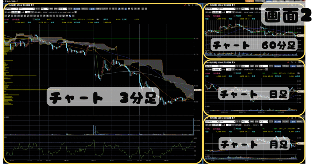 画面2:個別銘柄チャート(4種の時間軸)