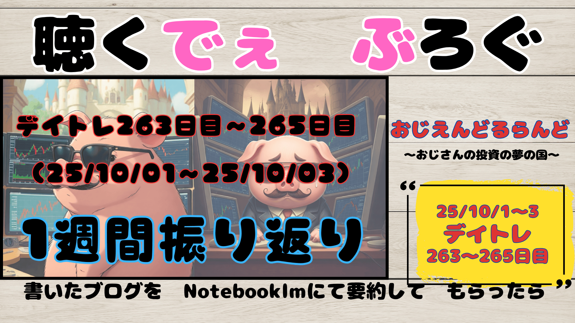 今週のトレード記録は、文字で読むにはあまりにも血生臭い。 「長文を読むのは辛い」「他人の不幸を家事の合間に聴きたい」 そんな読者のために、今週も「聴くでぇ ぶろぐ」を用意した。 今回は少し時間を遡り、10月のスタートダッシュの記録だ。AIが私の「損切り」と「倍返し」を冷静かつ無慈悲に分析している。
