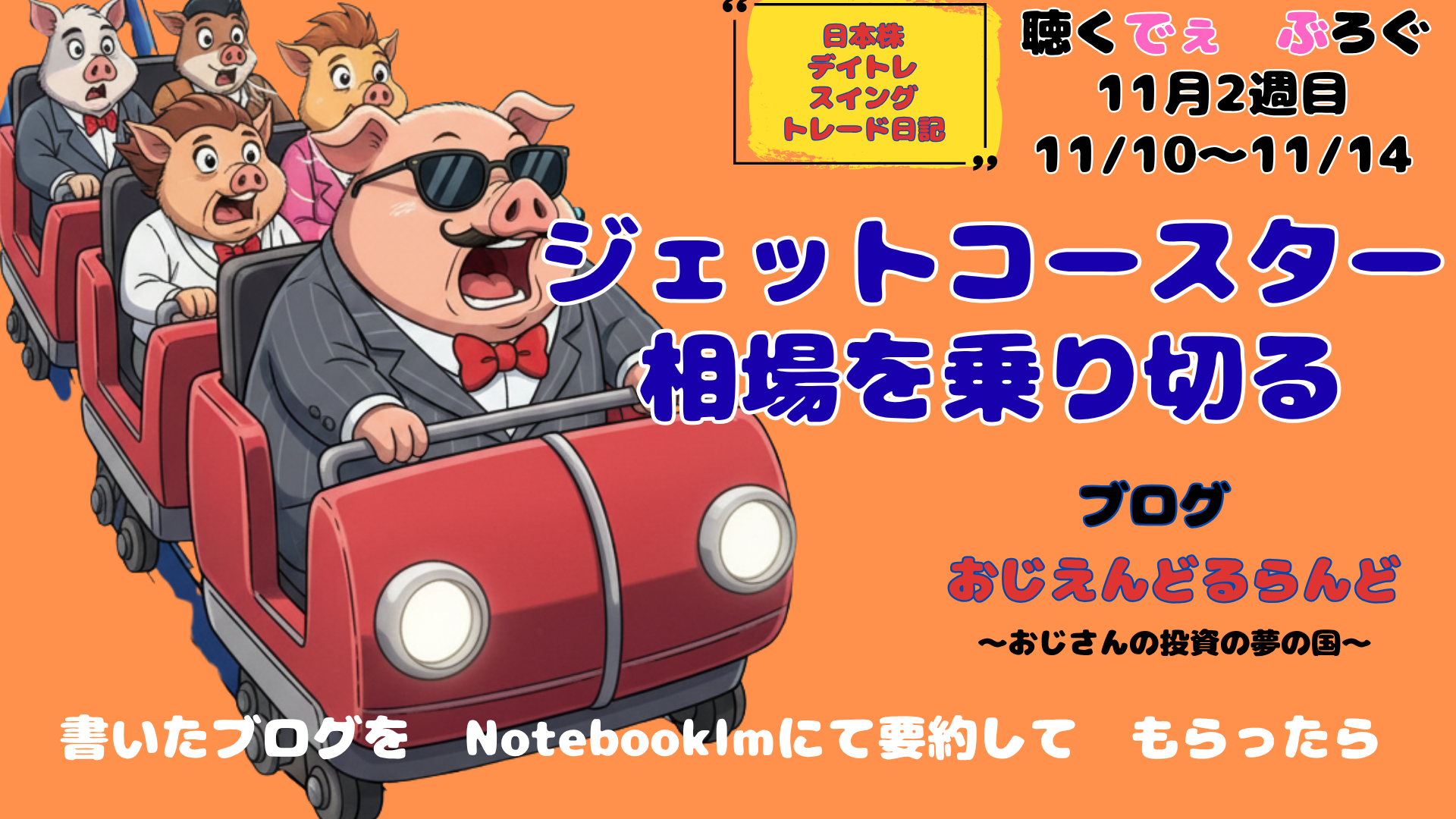 今週のトレード記録は、文字で読むにはあまりにも血生臭い。 「長文を読むのは辛い」「他人の不幸を家事の合間に聴きたい」 そんな読者のために、今週も「聴くでぇ ぶろぐ」を用意した。 今回は11月第2週の記録だ。AIが私の被弾状況を冷静かつ無慈悲に分析している。天国から地獄へ、ジェットコースターで吐き気を催したい奴だけ聴いてくれ。
