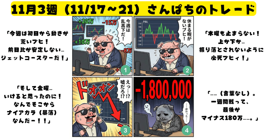 11月3週(11/17~21)さんぱちのトレード(4コマ漫画) 今週11/17~21のトレードの… -
