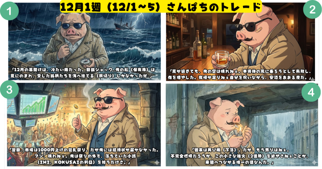 12月1週(12/1~5)さんぱちのトレード(4コマ漫画)