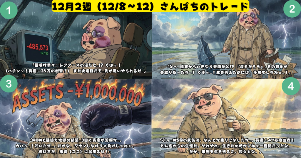 12月2週(12/8~12)さんぱちのトレード(4コマ漫画)