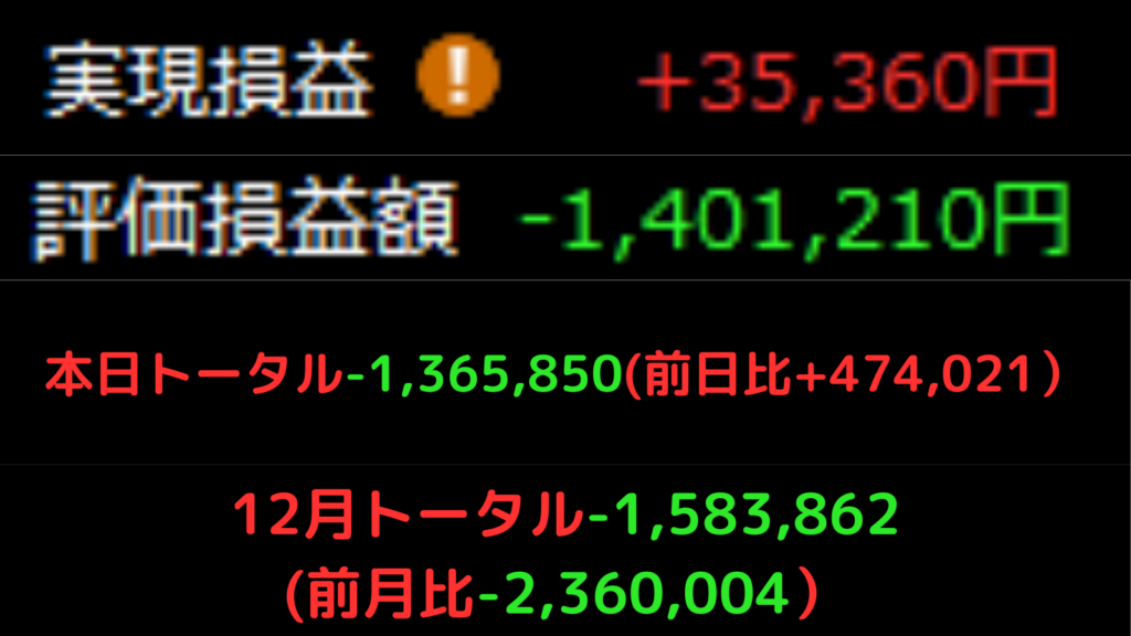 【12/9】デイトレ309日目 実現損益+2500円… 資産は−35万の急落。昨日の利益が溶けた日。詳細はNoteで