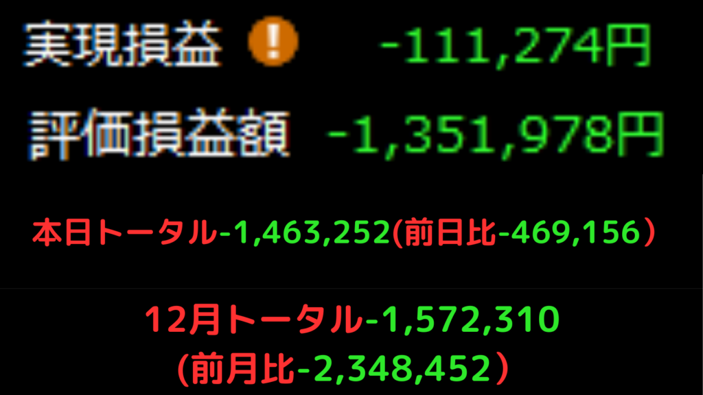 - 【12/11】デイトレ311日目 資産前日比−48万…止まらぬ暴落、3日で100万溶解。詳細はNoteで