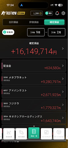 | 確定損益(24.9〜) | +16,149,714円(配当金含む) |